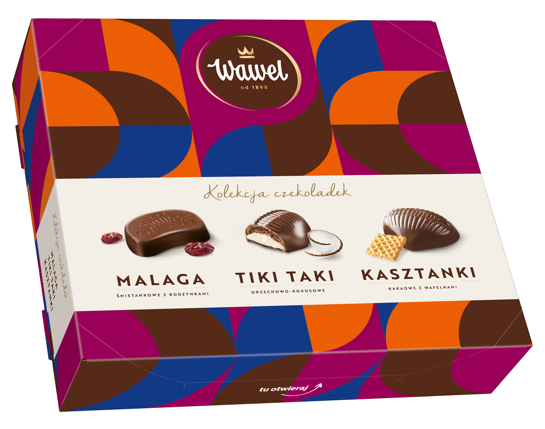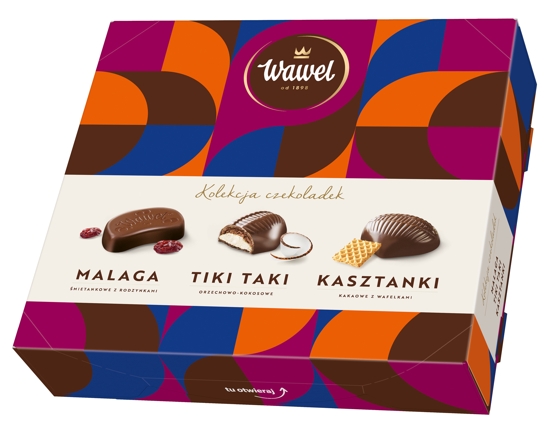 Skład: ΝΑΜΑΗΑ Składniki: czekolada 50% [cukier, miazga kakaowa, tłuszcz kakaowy, tłuszcz roślinny (shea), emulgator: lecytyny], cukier, rodzynki 7,3%, tłuszcz roślinny (palmowy), syrop glukozowy, μΝΙΕΥΑΞΛΑ ΛΣΕΝΟΨΑ (Ϋ ΝΜΕΛΑ) 4,6%, ΝΜΕΛΟ ΫΑΗθΤΫΓΫΟΞΕ ΤιΟΔΫΟΞΕ (ΝΜΕΛΟ, ΓΦΛΙΕΣ), spirytus, regulator kwasowości: kwas cytrynowy, aromat naturalny. Czekolada: masa kakaowa min. 43%. ΝΟνΕ ΫΑΨΙΕΣΑη: ΟΣΫΕΤΫΛΙ ΑΣΑΓΘΙΔΟΨΕ, ΟΣΫΕΓΘΪ ΜΑΤΛΟΨΕ, ΝΙΗΔΑιΪ, ΞΑΤΙΟΞΑ ΤΕΫΑΝΦ, ΠΤΫΕΞΙΓθ, ΤΟΚθ Ι ΚΑΚΑ.Wartość odżywcza 100g produktu: 1952 kJ/ 466kcal; tłuszcz: 22g; w tym kwasy tłuszczowe nasycone: 13g; węglowodany: 60g; w tym cukry: 57g; białko: 3,2g; sól: 0,04g. ΥΙΛΙ-ΥΑΛΙ Składniki: czekolada 44% [cukier, miazga kakaowa, tłuszcz kakaowy, tłuszcz roślinny (shea), emulgator: lecytyny], cukier, tłuszcz roślinny (palmowy, kokosowy), ΟΣΫΕΤΫΛΙ ΑΣΑΓΘΙΔΟΨΕ 11,3%, ΝΜΕΛΟ Ψ ΠΣΟΤΫΛΦ ΟΔΥιΦΤΫΓΫΟΞΕ, wiórki kokosowe 6,1%, emulgator: lecytyny. Czekolada: masa kakaowa min. 43%. ΠΣΟΔΦΛΥ ΝΟνΕ ΫΑΨΙΕΣΑη ΟΣΫΕΓΘΪ, ΞΑΤΙΟΞΑ ΤΕΫΑΝΦ, ΠΤΫΕΞΙΓθ, ΤΟΚθ Ι ΚΑΚΑ.Wartość odżywcza 100g produktu: 2334 kJ/ 561 kcal; tłuszcz: 37g; w tym kwasy tłuszczowe nasycone: 23g; węglowodany: 46g; w tym cukry: 44g; białko: 8,4g; sól: 0,1g. KASZTANKI Składniki: czekolada 43% [cukier, miazga kakaowa, tłuszcz kakaowy, tłuszcz roślinny (shea), emulgator: lecytyny], cukier, tłuszcz roślinny (palmowy), wafle 8,9% [ΝζΛΑ ΠΤΫΕΞΞΑ, cukier, skrobia ziemniaczana, tłuszcz roślinny (palmowy, kokosowy), sól], ΝΜΕΛΟ Ψ ΠΣΟΤΫΛΦ ΟΔΥιΦΤΫΓΫΟΞΕ, kakao o obniżone zawartości tłuszczu 3,7%, emulgator: lecytyny, aromat naturalny. Czekolada: masa kakaowa min. 43%. ΝΟνΕ ΫΑΨΙΕΣΑη: ΟΣΫΕΤΫΛΙ ΑΣΑΓΘΙΔΟΨΕ, ΟΣΫΕΓΘΪ ΜΑΤΛΟΨΕ, ΝΙΗΔΑιΪ, ΞΑΤΙΟΞΑ ΤΕΫΑΝΦ, ΠΤΫΕΞΙΓθ, ΤΟΚθ Ι ΚΑΚΑ. Wartość odżywcza 100g produktu: 2230 kJ/ 535kcal; tłuszcz: 31g; w tym kwasy tłuszczowe nasycone: 19g; węglowodany: 57g; w tym cukry: 49g; białko: 4,7g; sól: 0,08g.Przechowywać w suchym i chłodnym miejscu. Chronić przed bezpośrednim działaniem światła słonecznego. Masa netto: 158g. Najlepiej spożyć przed: data i nr partii na opakowaniu.