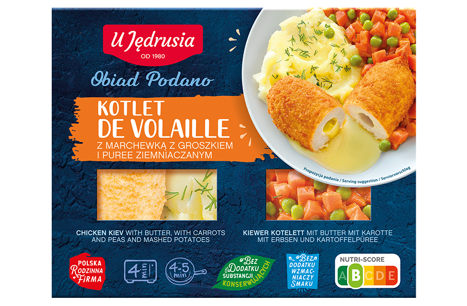 Kotlet de Volaille z Masłem z Marchewką z Groszkiem i Puree Ziemniaczanym 400g U Jędrusia